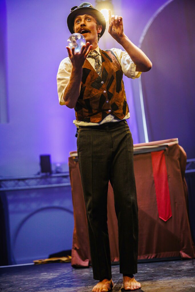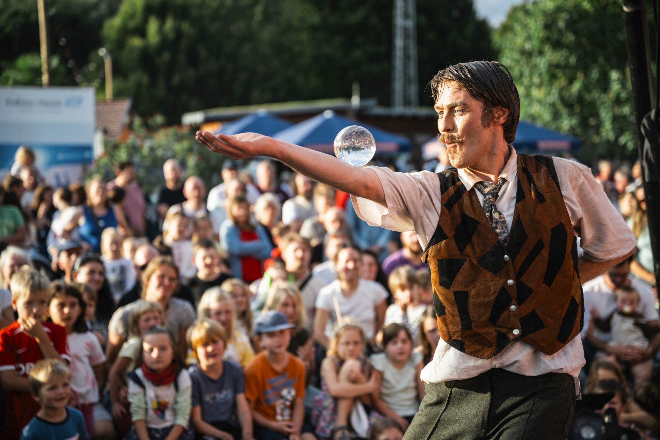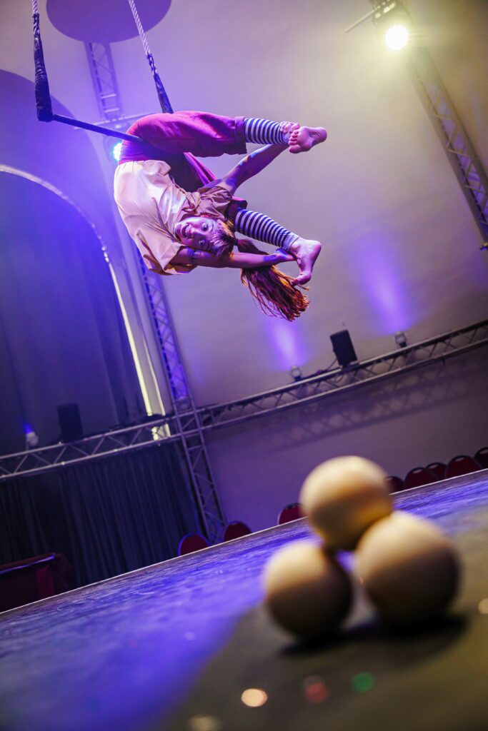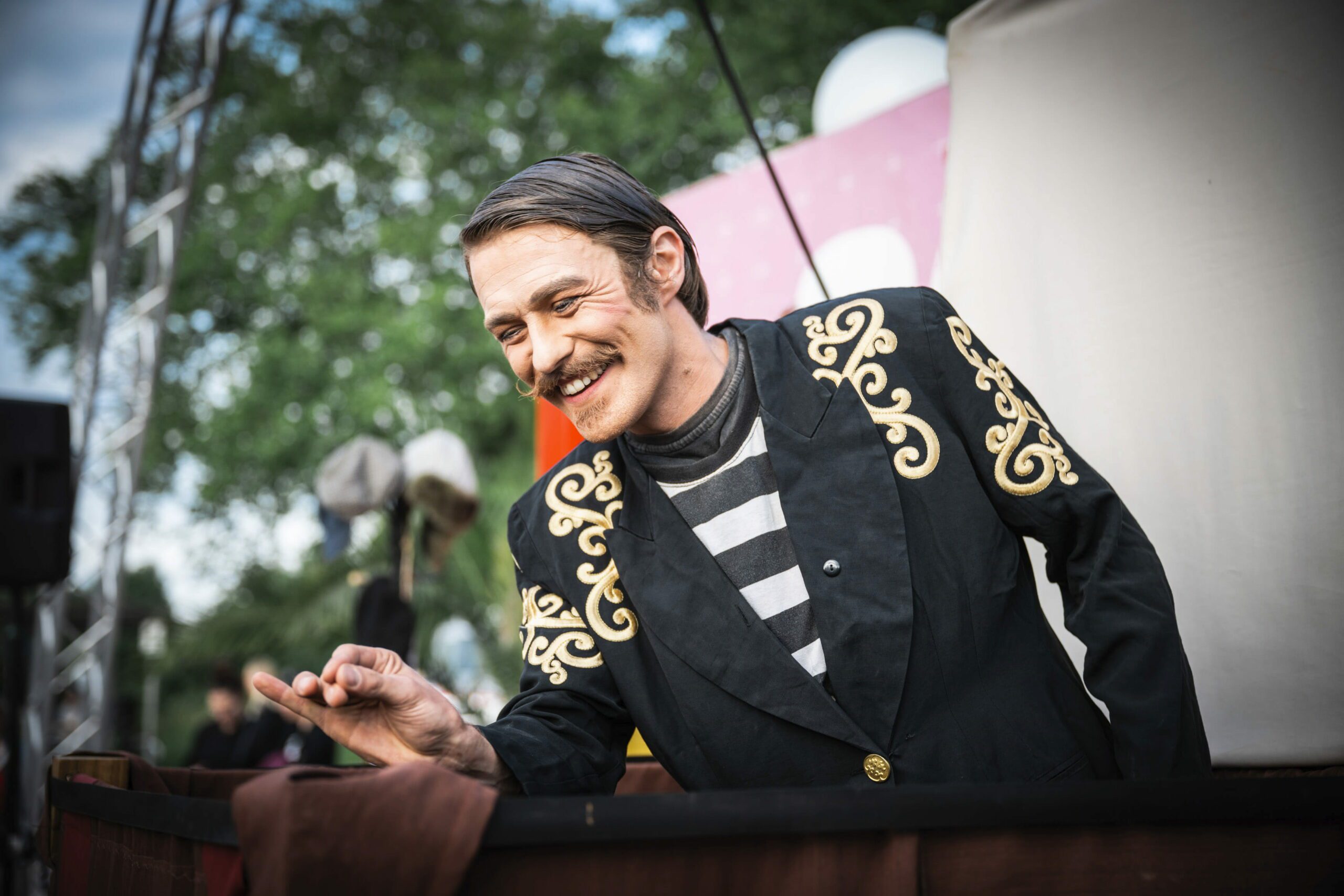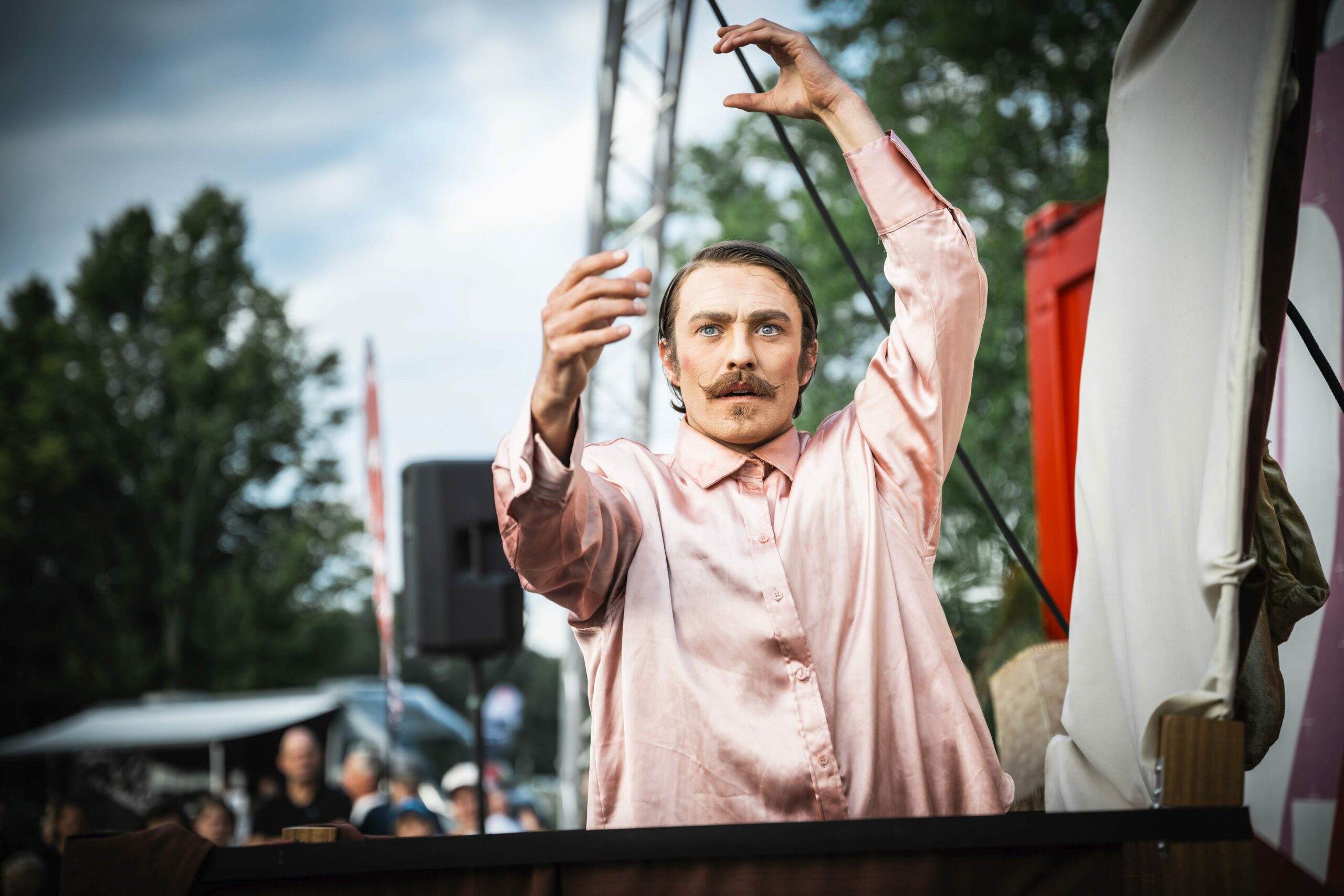 Mime act for Canapé 6 Places a podcast from Lena Situation, interviewing Billie Eillish, Paris, France